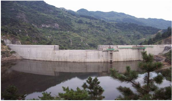 該工程位于勉縣二道河鄉(xiāng)褒河支流沙溝河中段,壩頂寬4.0m、底寬16m、壩高55m、壩頂弧長220.78m,為變?nèi)碾p曲拱壩。該壩壩體結(jié)構(gòu)復(fù)雜,此雙曲拱壩結(jié)構(gòu)為陜西第一座,技術(shù)含量較高。該工程于1998年9月1日開工,2003年1月31日竣工。