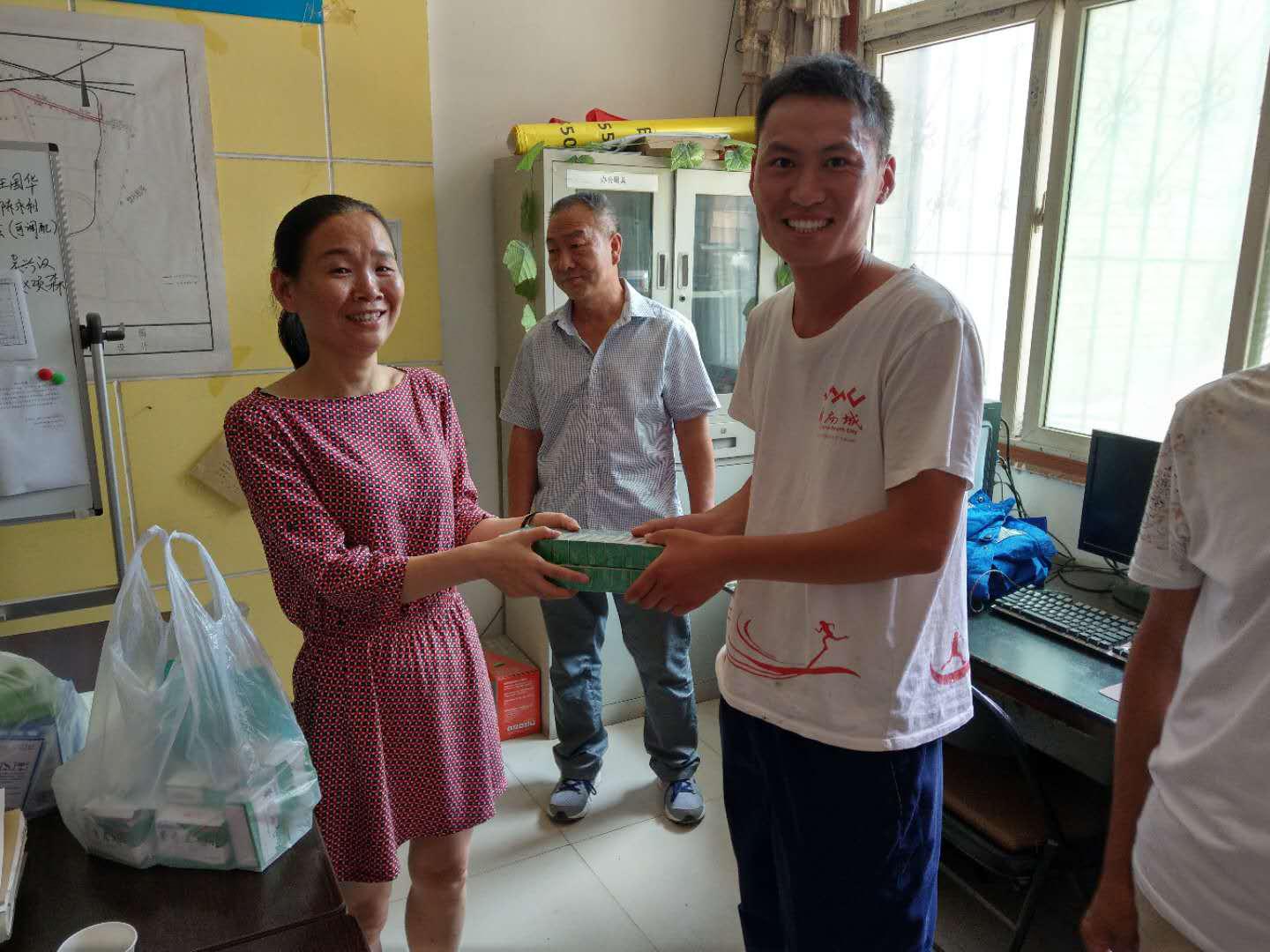 西安近期天氣炎熱,為確保施工人員人身安全,公司為項目部帶去了藿香正氣水、風油精、蚊香、礦泉水等防暑降溫用品,恰逢端午佳節來臨,公司還為每名員工準備了一份粽子。項目經理吳興漢代表項目全體員工感謝公司的關懷慰問,并表示一定做好一線員工的后勤保障工作,合理安排工作時間,確保工程質量精益求精、安全生產萬無一失、施工進度穩步推進。